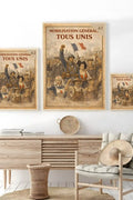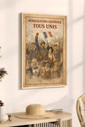 Cette affiche symbolise ce basculement historique, où la paix cède la place à l’épreuve, mais où se révèle aussi la grandeur d’un peuple prêt à tout donner. Elle fait vibrer l’esprit de fraternité, de devoir et de courage qui anima la France au seuil de la guerre.