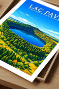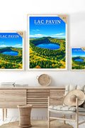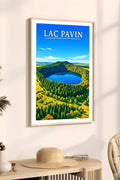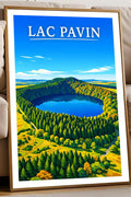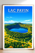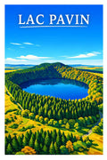 Au cœur de l’Auvergne, cette illustration met en avant un lac d’origine volcanique au caractère unique. Le lac Pavin séduit par une atmosphère profonde et mystérieuse et un environnement naturel préservé. Ce poster vintage évoque le calme des paysages volcaniques, idéal pour apporter une touche apaisante et singulière à votre intérieur.