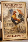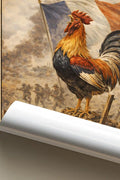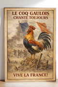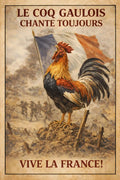 Notre affiche du coq gaulois fait revivre l’un des symboles les plus puissants de l’identité française, dressé avec fierté face à l’adversité. Inspirée des affiches de la Grande Guerre, elle évoque l’image d’une France debout, incarnée par ce coq indomptable, opposé avec vaillance à l’aigle de l’Empire.