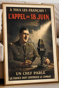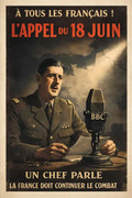 Découvrez notre Affiche – L’Appel du 18 juin, inspirée du message fondateur de la Résistance française durant la Seconde Guerre mondiale, symbole de continuité du combat et d’espoir national.